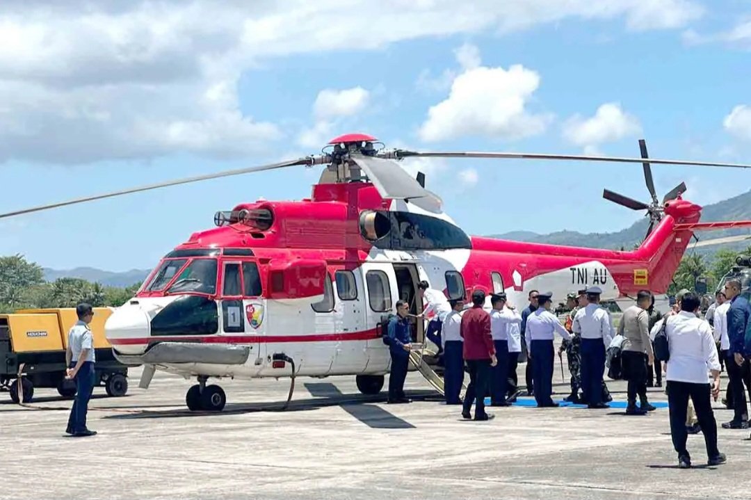 Sementara rombongan lainnya menggunakan helikopter Super Puma VVIP TNI AU H-3204 dan helikopter Super Puma VVIP TNI AU H-3222.
