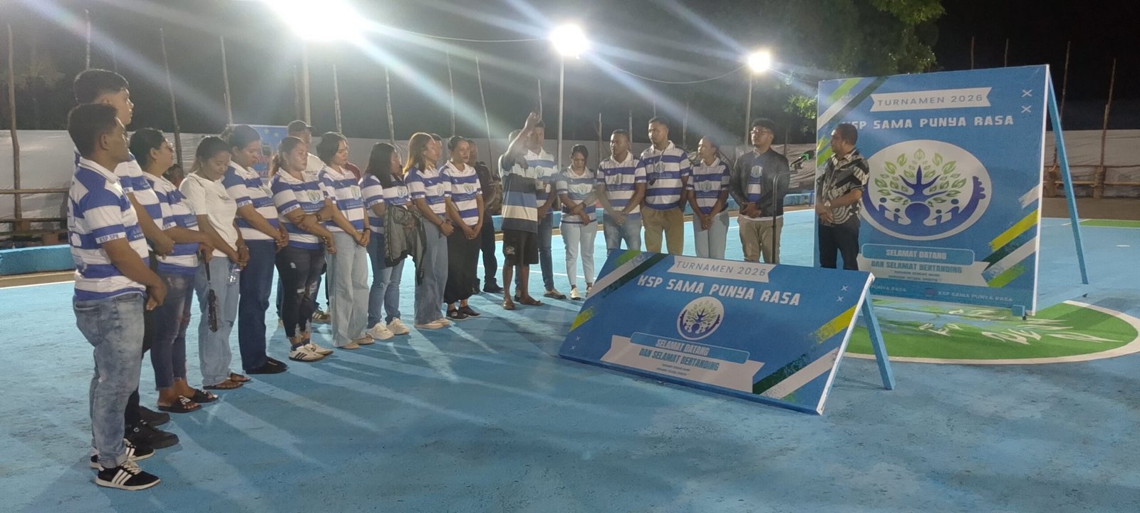 Sebagai informasi, pertandingan pembuka Turnamen Gawang Mini KSP Sama Punya Rasa mempertemukan Tim Maken Turlel dari Desa Kabiarat melawan Tim Tamang Lama 02 dari Desa Latdalam.