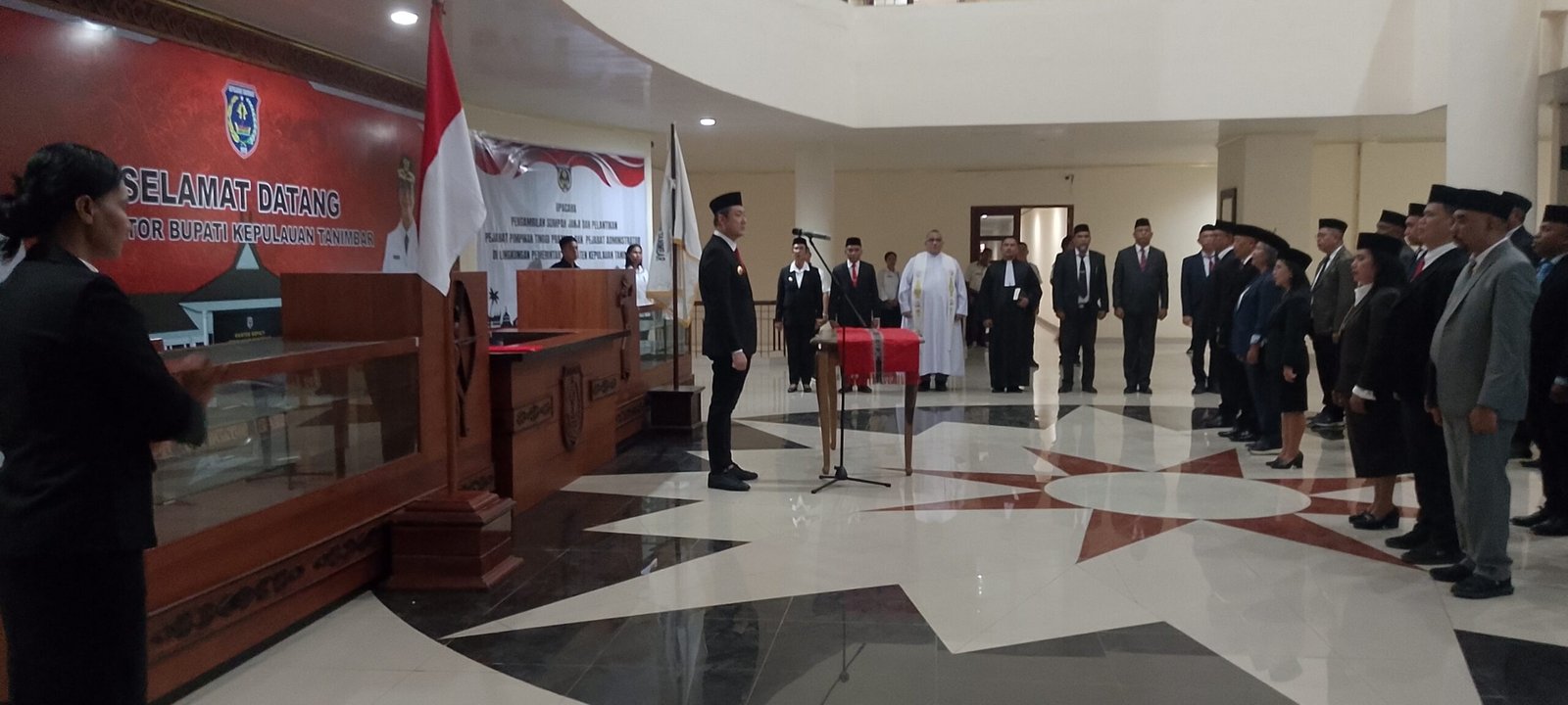 SAUMLAKI, FordataNews.com – Bupati Kepulauan Tanimbar, Ricky Jauwerisa, resmi melantik sejumlah Pejabat Pimpinan Tinggi Pratama dan Pejabat Administrator di lingkup Pemerintah Daerah Kabupaten Kepulauan Tanimbar, Rabu (15/4/2026), di Lobi Lantai II Kantor Bupati.